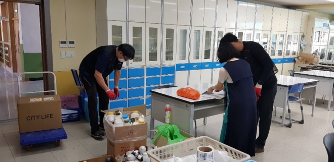 울산광역시교육청(교육감 노옥희)이 학생들의 안전한 과학 탐구활동 환경을 마련하고, 학교의 화학약품 관리에 대한 부담을 덜어주기 위해 학교 109곳의 과학실험실 폐수와 폐시약을 수거했다고 17일 밝혔다. 울산시교육청은 화학약품 전문처리업체를 통해 지난 15일부터 이날까지 학교를 방문해 실험수업 이후 발생하는 폐수와 오래된 실험용 폐시약을 수거했다. 이번 1차 수거로 폐수 및 폐시약 1만321㎏을 처리했고, 10월께 2차 수거를 할 예정이다. 잦은 유출사고로 유해성 문제가 제기된 포르말린 액침표본은 지난해 전량 수거했다. 시교육청은 올해도 과학실 안전장구 기준을 개정하고 안전관리 매뉴얼을 작성해 학교에 안내했다. 지난 5월에는 과학실험실 안전관리 학교 자체점검도 했다. 강북과 강남 교육지원청과 협조해 지난 5월25일부터 오는 19일까지 초‧중‧고교 40곳을 대상으로 안전컨설팅을 하고 있다. 학성여자중학교 등 5개 학교를 과학실 안전모델학교로 지정해 안전한 과학실 구축‧운영 체계도 만들었다. 울산광역시교육청 허성관 미래교육과장은 “적극적인 과학실험실 안전관리를 통해 교사와 학생들이 안전하고 미래지향적인 탐구활동을 할 수 있도록 적극 지원하고, 학교 현장의 실험안전 관련 상황을 꼼꼼히 살펴보겠다”고 말했다.
