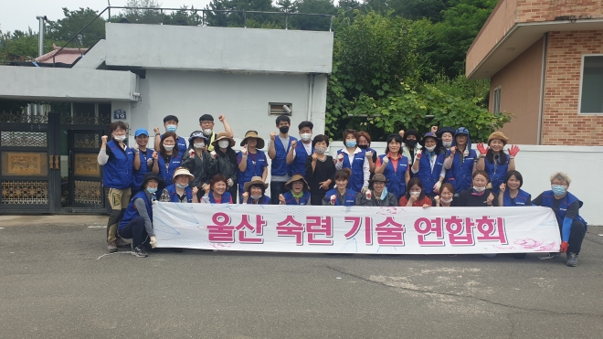 (사)울주군자원봉사센터(이사장 박태관) 전문자원봉사단협의회 소속 울산숙련기술연합회(회장 고동훈)는 6월 24일 언양읍 신흥마을에서 마을통합활동을 실시했다. 이번 활동은 울주군자원봉사센터 김외화 센터장, 울산숙련기술연합회 회원 30명이 참여하여 코로나19 바이러스 확산 방지를 위해 비대면 활동 위주로 방충망 보수, 대문 도색 등을 실시하였으며, 신흥마을에 그려진 벽화 일부 중 색이 바랜 벽면에 새로운 벽화를 그릴 수 있도록 도색작업을 하였다. 또한 꽈배기를 만들어 마을 이장님을 통해 전달함으로써 바깥 출입이 자유롭지 못해 답답해 하시는 어르신들의 마음을 위로해 드렸다. (사)울주군자원봉사센터 김외화 센터장은 “장기화 되고 있는 국가적 재난상황에 취약계층과 어르신들에게 힘이 되어 주신 봉사단체에 고맙다 ”고 인사를 전했으며 울산숙련기술연합회 고동훈 회장은 “전문 재능을 가진 회원들이 꼭 필요한 곳에 재능을 나눌 수 있어서 더 보람되고 감사하다”고 “앞으로도 작은 힘이라도 어려운 시기에 보탬이 되고자 한다”고 감사의 인사를 전했다.