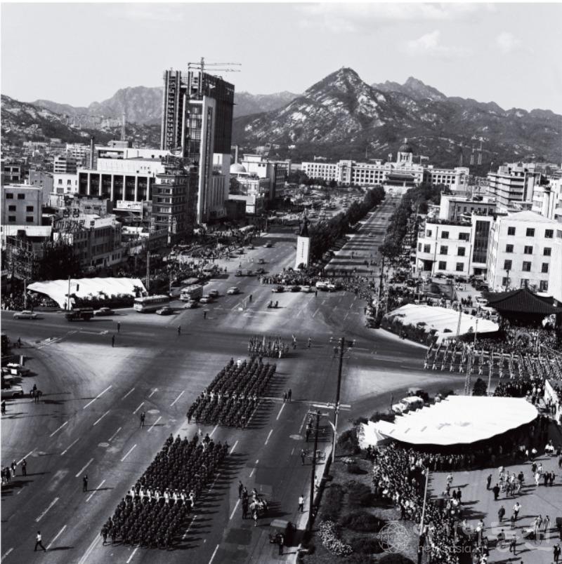 파트1 ‘하늘에서 본 서울’ 에서는 한국전쟁 중에 종군기자로 활동했던 김한용 작가가 60년대부터 공군의 도움으로 서울 상공에서 찍은 시가지의 모습을 선보인다. 서울 전역을 누비며 찍은 항공사진에는 전쟁의 상흔을 넘어 고층빌딩이 하나둘 들어서가며 현대도시로 탈바꿈하던 서울의 모습이 오롯이 담겨있다. 당시 홍보용 화보에 자주 등장했던 서울의 항공사진은 당시의 실제實際 모습이자 조국 근대화의 구호 속에, 한강의 기적을 만들어 가던 환영幻影이기도 하다.