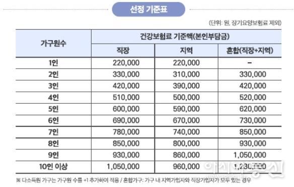 다만 가구원 합산 2024년 재산세 과세표준 합계액이 12억원을 초과하거나 2024년 귀속 금융소득 합계액이 2천만원을 넘는 경우는 제외된다.