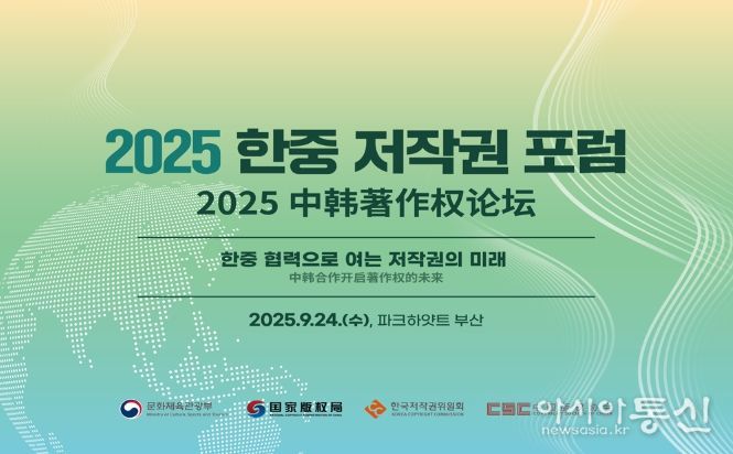 [아시아통신] 문화체육관광부는 한국저작권위원회, 중국 국가판권국과 함께 9월 24일, 파크하얏트 부산에서 ‘2025 한중 저작권 정부간회의(오전)’와 ‘2025 한중 저작권 포럼(오후)’을 열어 저작권 보호를 위한 양국 협력 방안과 인공지능(AI), 블록체인 등 기술 발전에 따른 저작권 정책 변화 및 대응을 논의한다.