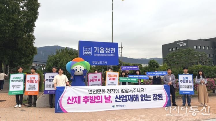 [아시아통신] 창원특례시는 24일 가음정사거리 일대에서 창원국가산단 중대재해 예방을 위해 ‘산재 추방 홍보의 날’ 캠페인을 펼쳤다.
