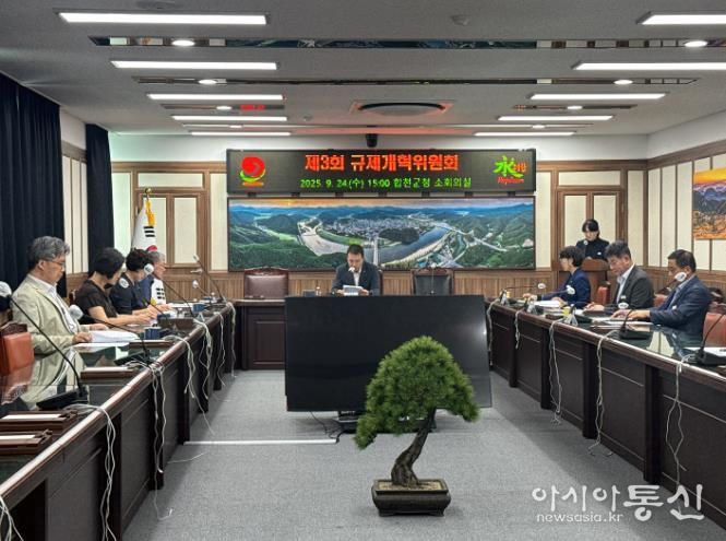 [아시아통신] 합천군은 24일 군청 2층 소회의실에서 위원장인 장재혁 부군수를 포함한 8명의 위원이 참석한 가운데 2025년 제3회 합천군 규제개혁위원회를 개최했다.