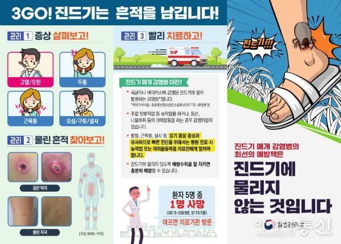 질병관리청 주요 진드기매개감염병 월별 발생 현황조사에 따르면, 국내에서 발생하는 주요 진드기매개감염병은 ‘쯔쯔가무시증’과 ‘중증열성혈소판감소증후군’이며, 최근 3년간 전체 환자의 74.3%가 가을철(9~11월)에 집중적으로 발생한 것으로 나타났다.
