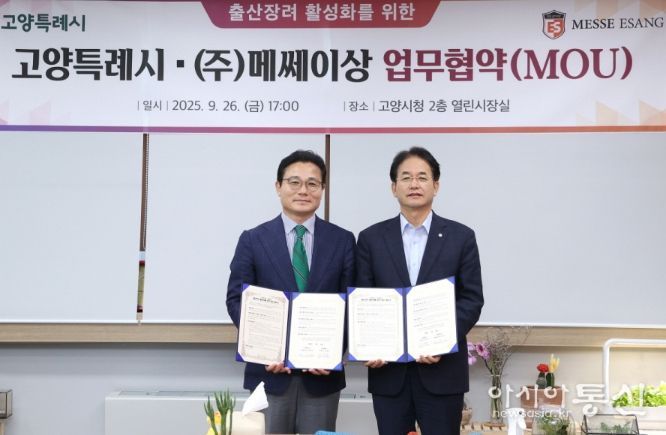 [아시아통신] 고양특례시는 국내 대표 전시 주최사 ㈜메쎄이상(대표 조원표)이 지자체와는 최초로 출산 장려 활성화 및 건강한 양육 문화 조성을 위해 손을 잡았다고 밝혔다.