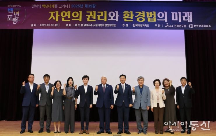 전북연구원이 30일 전북특별자치도청 대회의실에서 개최한 전북 백년포럼 제39강 초청연사로 강연에 나선 홍준형 명예교수(서울대 행정대학원)는 ‘자연의 권리와 환경법의 미래’라는 주제 강연을 통해 이같이 지적했다.