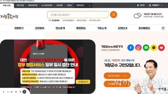 현재 행정전자서명, 전자문서유통 등 필수 행정서비스는 재개됐으나, 국민신문고, 모바일 신분증 등 일부 서비스는 여전히 전국적으로 접속이 중단된 상태다. 이에 따라 거창군은 같은 날 구인모 군수 주재로 대책 회의를 열고, 누리집 알림창을 통해 서비스 제한 목록과 대처 방안을 실시간 안내하는 등 불편 최소화를 위해 적극 대응하고 있다.