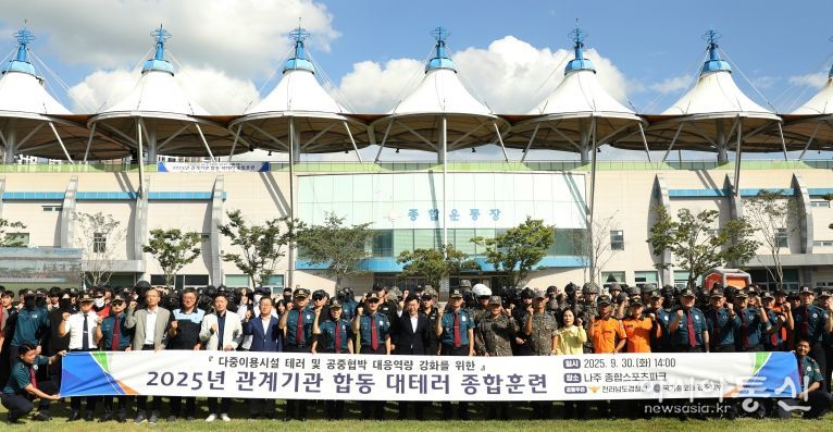 [아시아통신] 전남경찰청은 나주종합스포츠파크에서 국가정보원(광주지부), 육군 제31보병사단, 제11공수특전여단, 공군 제1전투비행단, 전남소방본부, 영산강유역환경청 등 10개 기관 250여명이 참여한 가운데 관계기관 합동 대테러 종합훈련을 실시했다.