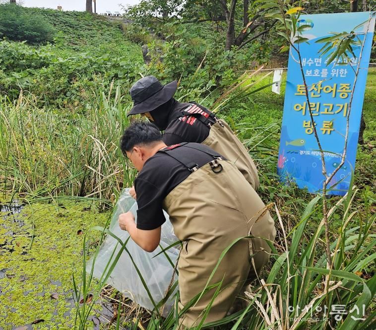 [아시아통신] 경기도해양수산자원연구소가 토종 민물고기 종 보존과 하천 생태계 복원을 위해 경기도 보호 어종인 버들붕어 치어 1천 마리를 9월 30일 광주시 경안천습지생태공원에 방류했다.