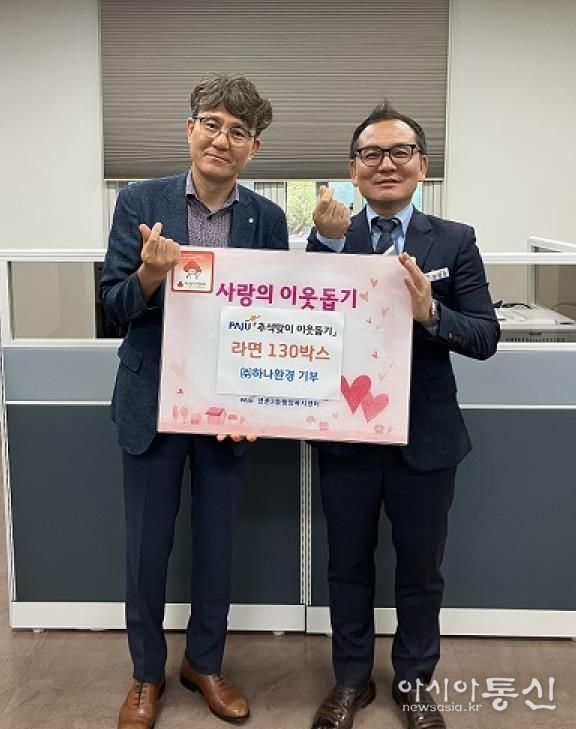 [아시아통신] 금촌2동이 추석 명절을 앞두고 ㈜하나환경으로부터 라면 130박스를 기탁 받았다.