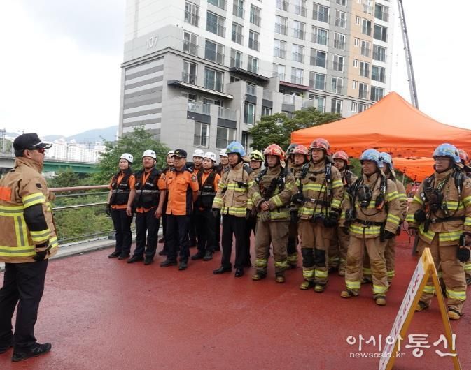 훈련은 사전 시나리오 없이 아파트 내 화재 발생을 가정해 진행했으며, 긴급구조지휘대 지원반을 포함한 현장지휘단, 119구조대, 평내119안전센터 대원들이 참여해 각자의 임무를 수행했다. 현장에서는 지휘소 설치, 자원 지원, 안전 관리, 통신 체계 유지 등 재난대응 절차 전반을 실제 상황처럼 점검했다.