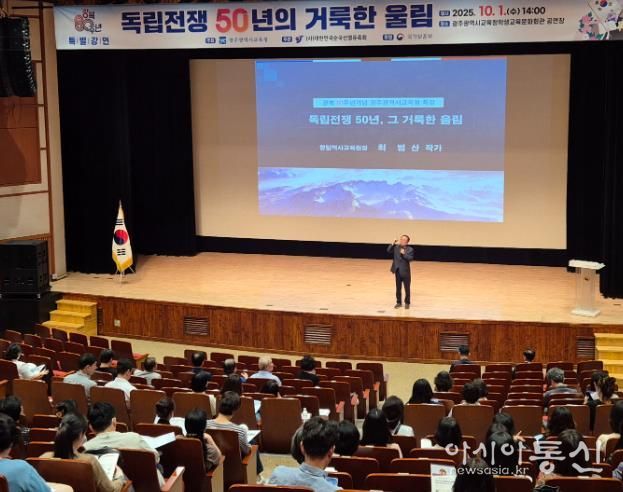 [아시아통신] 광주시교육청은 1일 학생교육문화회관 공연장에서 광복 80주년을 맞아 인문학 강연 ‘독립운동 50년의 거룩한 울림’을 진행했다.