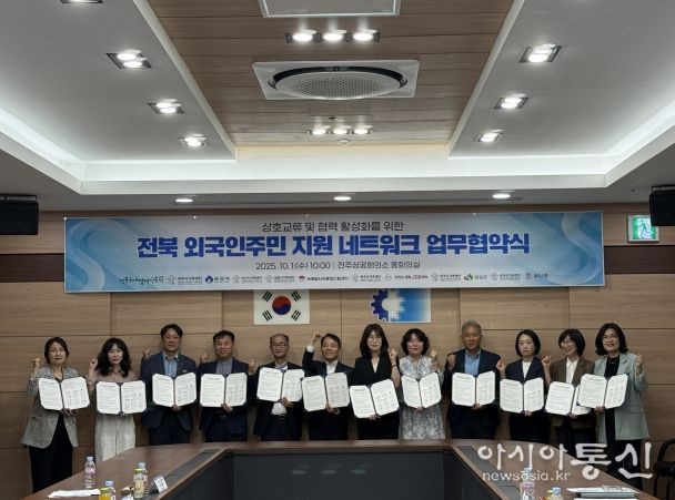 [아시아통신] 전북국제협력진흥원은 오늘인 10월 1일, 전주상공회의소 중회의실에서 도내 외국인지원센터 운영기관들과 함께 '전북 외국인주민 지원 네트워크 협약'을 체결했다고 밝혔다.