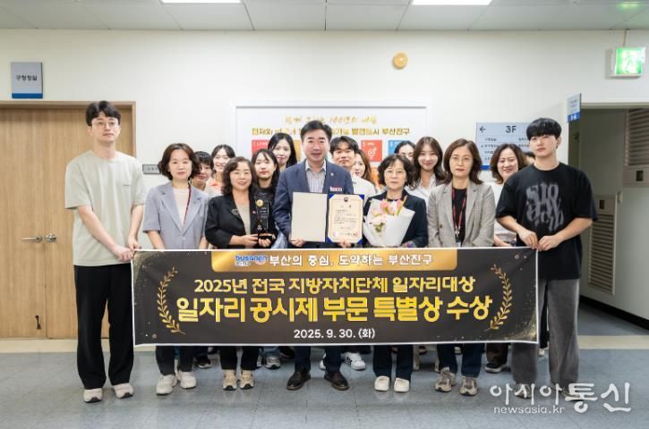 [아시아통신] 부산 부산진구가 고용노동부 주관 ‘2025 전국 지방자치단체 일자리대상’ 지역일자리 목표 공시제 부문에서 특별상을 수상했다고 밝혔다.