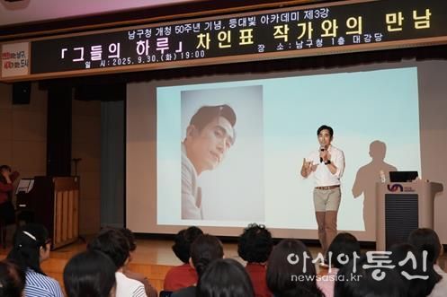 [아시아통신] 부산 남구는 지난 9월 30일 남구청 개청 50주년을 맞이해, 구청 1층 대강당에서 '제20기 등대빛 아카데미' 3강으로 배우 겸 작가 차인표 씨를 초청해 특별강연을 열었다.