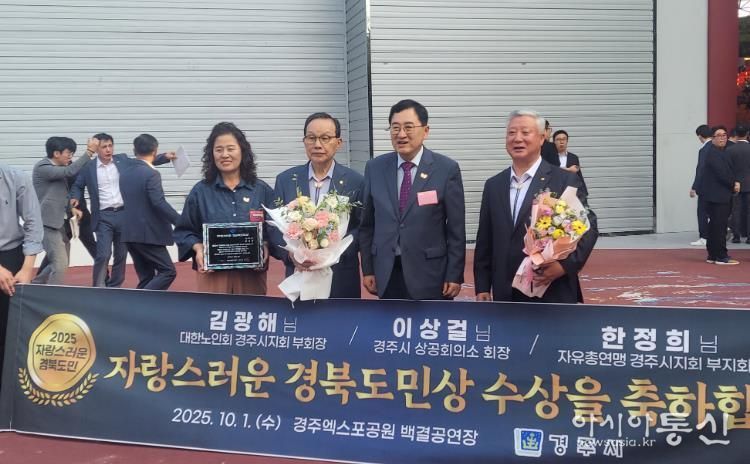 [아시아통신] 경주시는 1일 열린 ‘2025 자랑스러운 경상북도민상’ 시상식에서 경주시민 3명이 수상자로 선정되는 영예를 안았다고 밝혔다.
