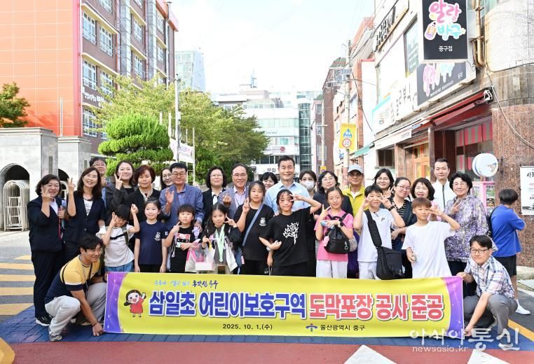 [아시아통신] 울산 중구가 삼일초등학교 어린이보호구역 도막 포장 공사를 마무리했다.
