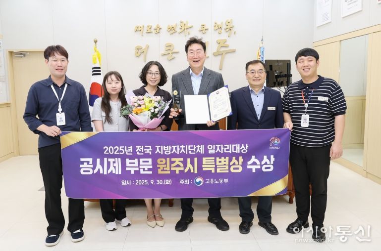[아시아통신] 원주시는 지난 30일 청주 오스코에서 열린 고용노동부 주관 ‘2025 전국 지방자치단체 일자리대상’ 공시제 부문에서 특별상을 수상했다. 지난해 우수상에 이어 2년 연속 장관상을 받으며, 일자리창출 분야에서 전국적으로 성과를 인정받았다.