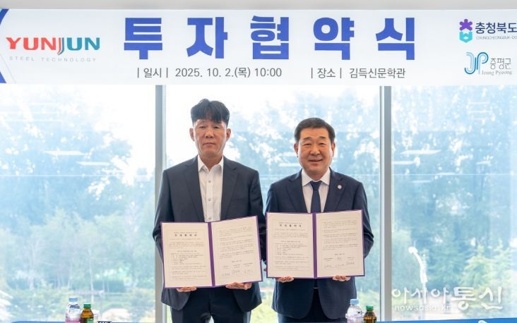 [아시아통신] 충북 증평군은 2일 김득신문학관에서 충북도, ㈜윤준에스티(대표이사 김태수)와 증평3일반산업단지 내 공장을 신설하는 투자협약(MOU)을 체결했다.
