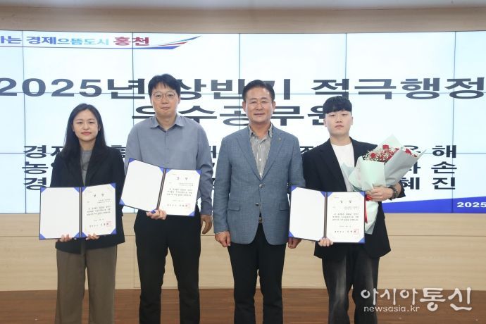 [아시아통신] 홍천군은 10월 1일 홍천군청 대회의실에서 2025년 상반기 적극행정 우수공무원 3명에게 상장을 수여하고 격려했다.