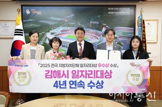 [아시아통신] 김해시는 지난 9월 30일 청주 오스코에서 개최된 ‘2025년 전국 지방자치단체 일자리대상’에서 경남 유일 9번째 일자리대상을 수상했다고 2일 밝혔다.