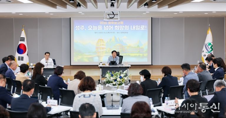 [아시아통신] 성주군은 10월 2일 군청 문화강좌실에서 팀장급 이상 간부 공무원이 참석한 가운데‘2026 업무보고회’를 개최하고, 민선8기 마지막 해의 군정 운영 방향과 주요 과제를 점검했다.
