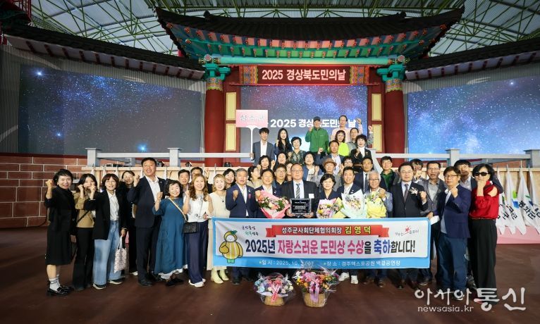 [아시아통신] 성주군 사회단체협의회 김영덕 회장이 2025년 10월 1일 개최된 2025 경상북도민의 날 기념식에서 ‘자랑스러운 도민상’을 수상했다.