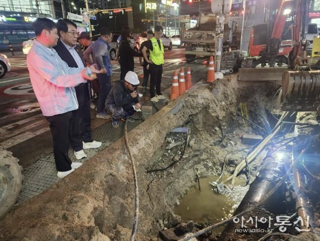[아시아통신] 조성대 남양주시의회 의장이 지난 1일 저녁 평내동 일대 노후 상수도관 교체 현장을 방문해 단수로 인한 주민 불편이 최소화될 수 있도록 신속한 복구를 주문했다.