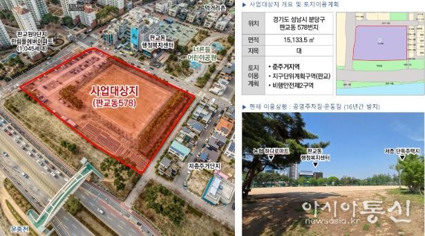 [아시아통신] 성남시는 판교동 578번지 옛 차량등록사업소 부지의 개발 방향을 ‘기업 유치 및 복합문화체육시설 조성’으로 확정하고, 내년부터 사업을 본격 추진한다고 2일 밝혔다. 이는 16년간 방치된 부지를 지역 발전과 시민 편익 증진의 거점으로 탈바꿈시키려는 시의 강력한 의지가 반영된 결과다.