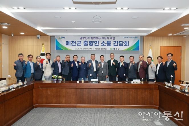 [아시아통신] 예천군은 5일, 군청에서 출향인 소통 간담회를 열어 고향을 찾은 출향인들과 함께 지역 발전 방향을 논의했다.