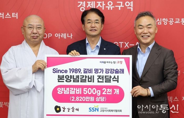 [아시아통신] 고양특례시는 지난 10일 고양시청 열린시장실에서 ㈜전한 강강술래와 어려운 이웃을 위한 본양념갈비 전달식을 진행했다.