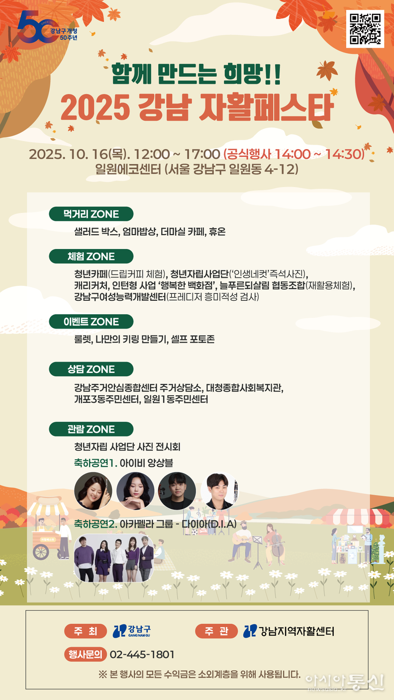 꿈이 모이는 도시, 미래를 그리는 강남구(구청장 조성명)가 10월 16일 낮 12시부터 오후 5시까지 일원에코센터에서 ‘2025 강남 자활페스타’를 개최한다.