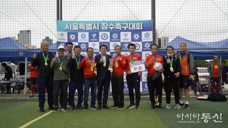서울특별시의회 도시안전건설위원회 부위원장으로 의정활동하고 있는 김용호 시의원(국민의힘, 용산1)은 지난 10월 11일과 12일, 성동구 살곶이체육공원과 응봉축구장, 중랑물재생센터 축구장에서 열린 ‘서울시 7080 장수축구대회’에 참석하여 개회식에서는 축하 인사를 전하고, 폐막식에서는 70대B조 우승팀에게 직접 트로피와 우승컵을 수여했다.