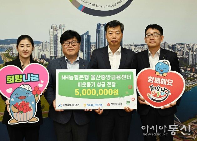 [아시아통신] NH농협은행 울산본부는 13일 남구청을 방문해 ‘경로의 달’을 기념하여 남구 지역 어르신들의 복지 향상을 위한 후원금 500만 원을 전달했다.