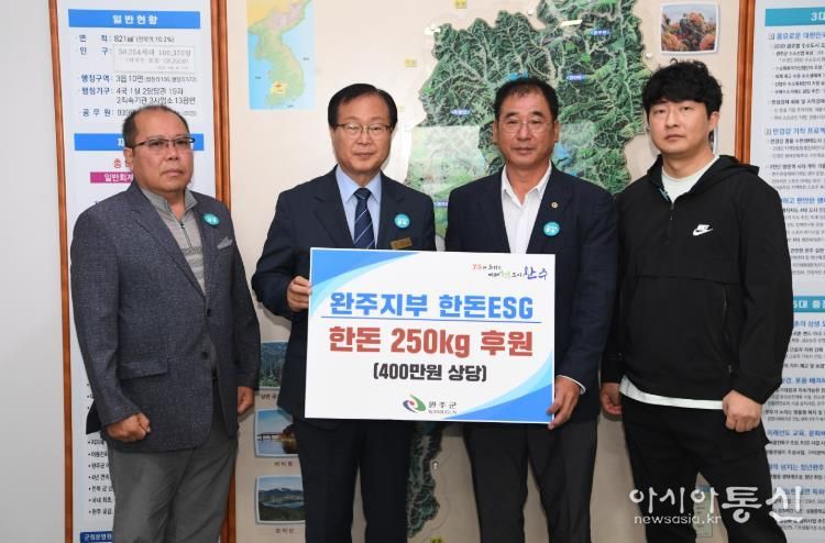 [아시아통신] (사)대한한돈협회 완주지부가 완주군에 400만 원 상당의 돼지고기 전지 250kg를 전달했다.
