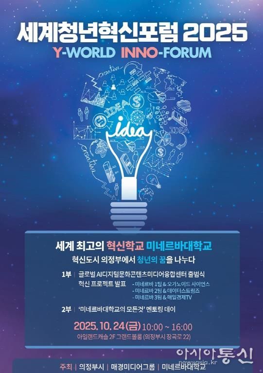 [아시아통신] 의정부시는 10월 24일 오전 10시, 아일랜드캐슬 2층 그랜드볼룸에서 ‘세계청년혁신포럼 2025(Y-WORLD INNO-FORUM)’를 개최한다.