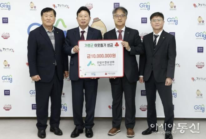 [아시아통신] 산림조합중앙회 서울인천경기지역본부는 13일 가평군청을 방문해 지역의 어려운 이웃을 돕기 위한 성금 1천만 원을 기탁했다.