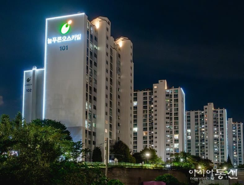 [아시아통신] 오산시 관내 아파트(공동주택) 단지들이 오색찬란한 빛으로 물들고 있다.