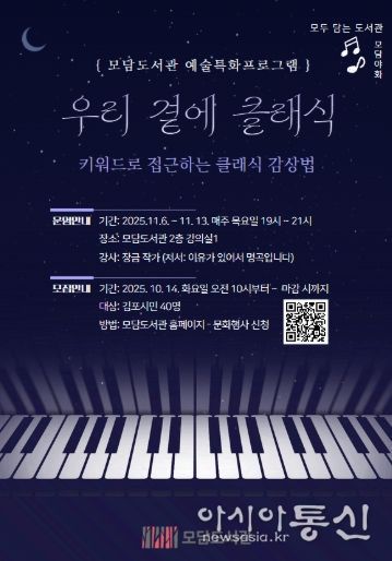 [아시아통신] 김포시 모담도서관은 클래식을 주제로 11월 6일부터 13일까지 매주 목요일 오후 7시부터 9시까지 특별 강연을 운영한다.