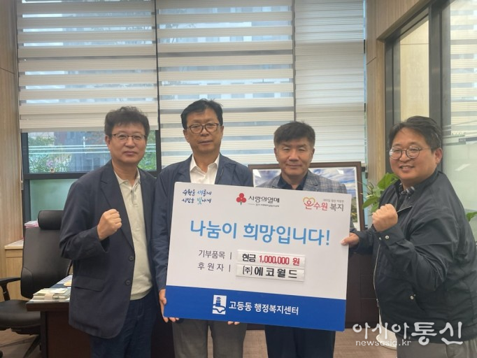 수원시 팔달구 고등동(동장 윤병철)은 10월 13일, 사회적기업 ㈜에코월드(대표이사 김재호)로부터 관내 취약계층을 위한 이웃돕기 성금 100만원을 전달받았다고 밝혔다.