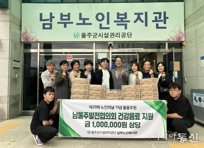 [아시아통신] 울주군시설관리공단 남부노인복지관(관장 조덕행)은 10월 14일 남울주발전협의회(회장 한성율)로부터 100만원 상당의 건강음료 1,000개를 기부받았다.