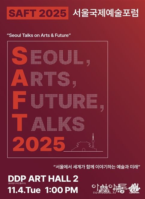 [아시아통신] 서울문화재단은 11월 4일 오후 1시, DDP(동대문디자인플라자) 아트홀 2관에서 ‘서울국제예술포럼(SAFT, Seoul·Arts·Future Talks)’을 처음 개최한다. 이번 포럼은 “서울에서 세계가 함께 이야기하는 예술과 미래(Seoul Talks on Arts & Future)”를 주제로, 동시대 문화예술과 정책의 흐름 속에서 글로벌 도시 서울의 정체성과 미래 전략을 논의하는 자리다.