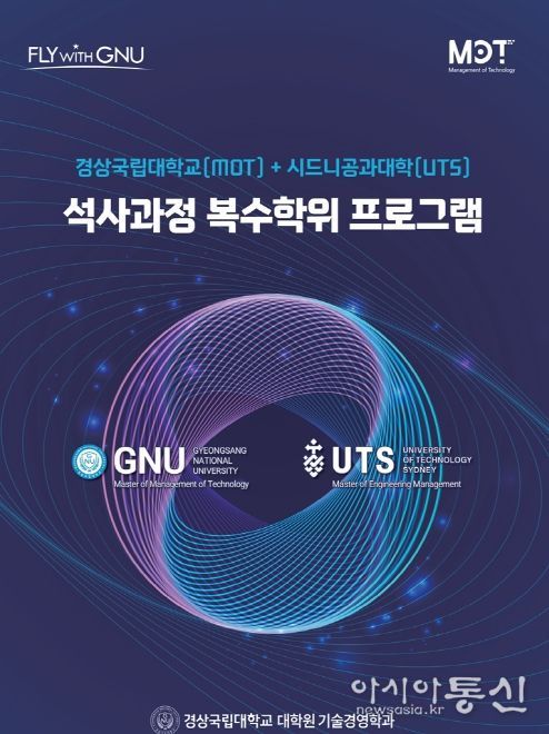 [아시아통신] 경상국립대학교가 호주 시드니공과대학교(University of Technology Sydney, 이하 UTS)와 손잡고 글로벌 기술경영 전문인력 양성을 위한 석사 복수학위 과정을 본격 추진한다.