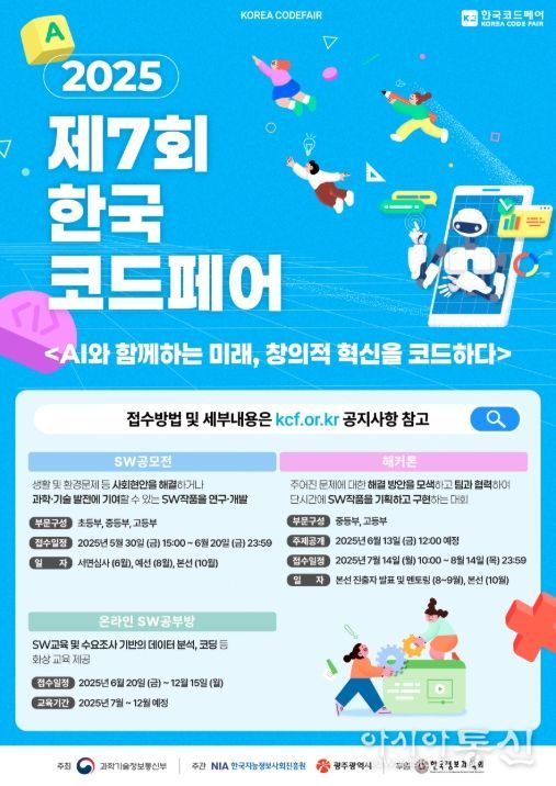 [아시아통신] 광주광역시는 과학기술정보통신부, 한국지능정보사회진흥원과 함께 17~18일 이틀간 김대중컨벤션센터에서 국내 최대 컴퓨터프로그램 경진대회인 ‘제7회 한국코드페어’ 본선 대회를 개최한다.