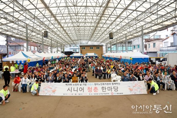 [아시아통신] 이천시는 제29회 노인의 날을 기념하여 10월 15일(화) 이천시 청미노인복지관(관장 최대열)에서 지역 주민과 어르신 800여 명이 참여한 가운데 ‘시니어 청춘 한마당’ 행사를 성황리에 개최했다고 밝혔다.