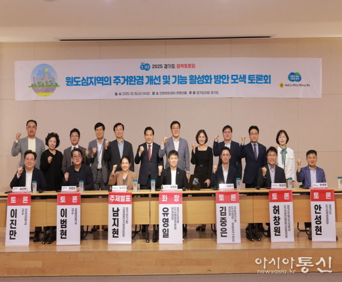 [아시아통신] 경기도의회 도시환경위원회 유영일 부위원장(국민의힘, 안양5)이 좌장을 맡은 '원도심지역의 주거환경 개선 및 기능 활성화 방안 모색 토론회'가 10월 15일 안양아트센터 컨벤션홀에서 개최됐다. 이번 토론회는 경기도와 경기도의회가 공동으로 주최하는 ‘2025 경기도 정책토론회’의 일환으로 개최됐다.