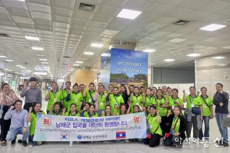 [아시아통신] 남해군은 법무부 주관 ‘2025년 하반기 외국인 계절근로자 프로그램’으로 배정된 ‘라오스 외국인 여성 계절근로자’ 34명이 지난 16일 김해공항을 통해 입국했다고 밝혔다.