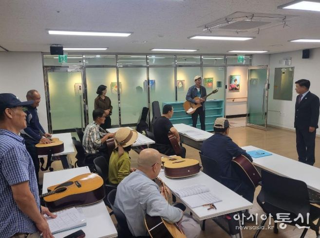 [아시아통신] 고성군이 운영하는 고성군종합사회복지관 분관에서는 10월 17일 저녁, 야간노래교실과 통기타반 수강생들을 격려하기 위해 이상근 군수가 직접 현장을 방문했다.