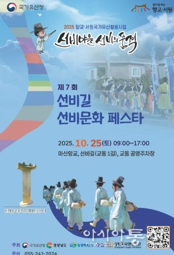 [아시아통신] 창원특례시는 오는 25일 오전 9시부터 오후 5시까지 마산향교에서 창원국악관현악단이 주관하는 ‘선비길 선비문화 페스타’를 개최한다고 밝혔다.