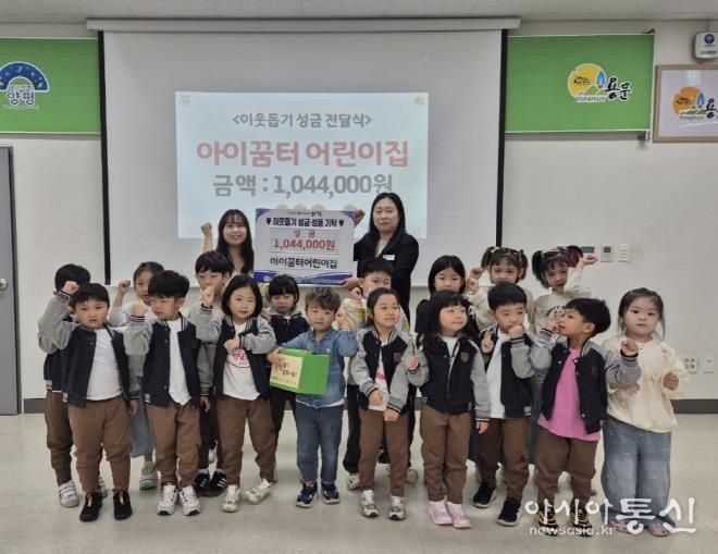 [아시아통신] 양평군 용문면은 지난 20일 용문면 소재 아이꿈터 어린이집이 주최한 ‘소소한 기쁨, 특별한 만남, 행복 나눔 작은 장터’ 바자회를 통해 마련된 수익금 1,044,000원을 용문면에 기탁했다고 밝혔다.
